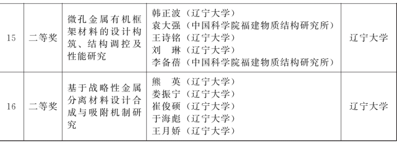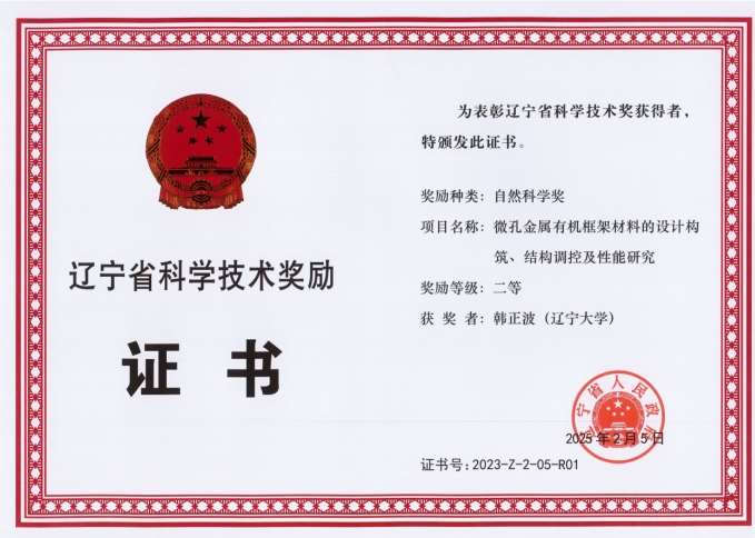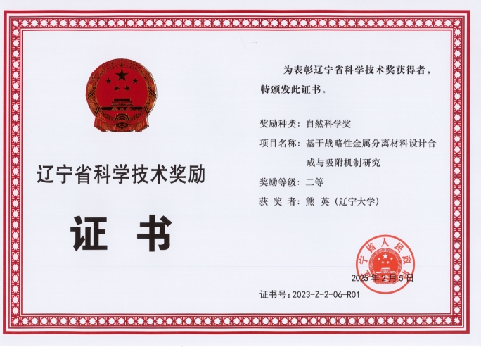 近日,辽宁省人民政府正式公布了2023年度辽宁省科学技术奖励决定。公司两项科研成果荣获辽宁省自然科学二等奖:韩正波教授团队主持完成的“微孔金属有机框架材料的设计构筑、结构调控及性能研究”项目和熊英教授团队主持完成的“基于战略性金属分离材料设计合成与吸附机制研究”项目双双获此殊荣。这两项研究成果展现了公司在材料科学领域的前沿探索和创新能力。