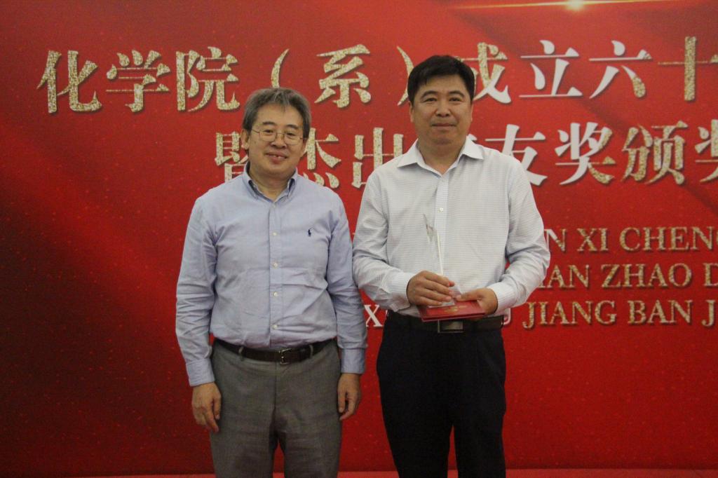 照片为宋溪明教授向1995级姜连发颁奖。摄影张鹏。