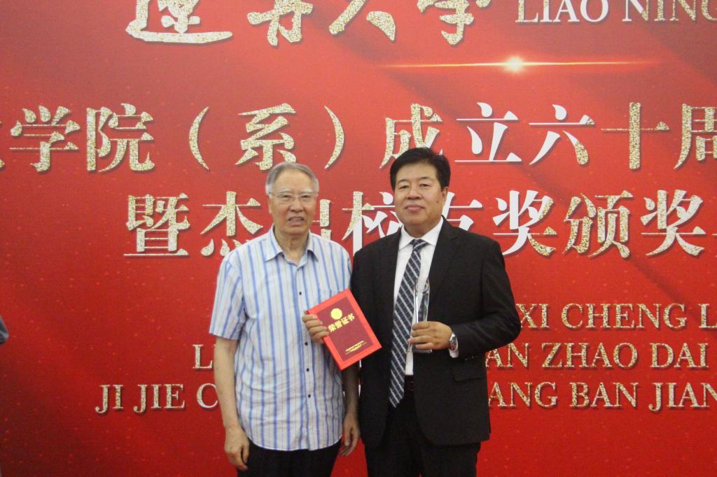 照片为刘祁涛向1982级员工关逾颁奖。